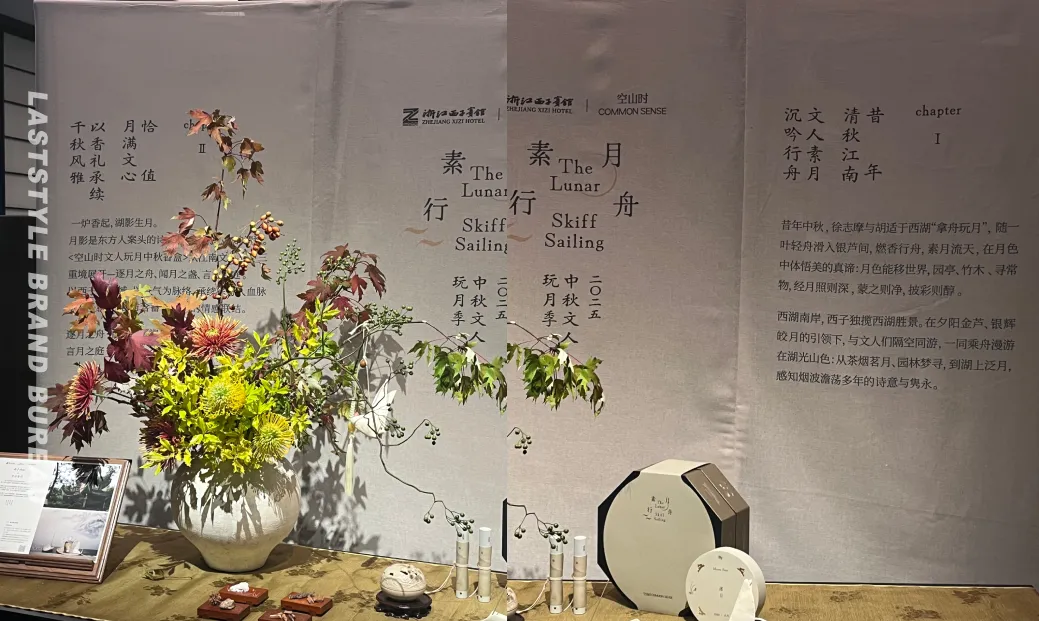 空山时的做法似乎更加全面,它几乎将自身完全“溶解”于西子宾馆的中秋场景之中,借由酒店的物理空间和历史文脉,共同创造了一个名为「素月行舟」的、可独立售卖的文化体验产品。