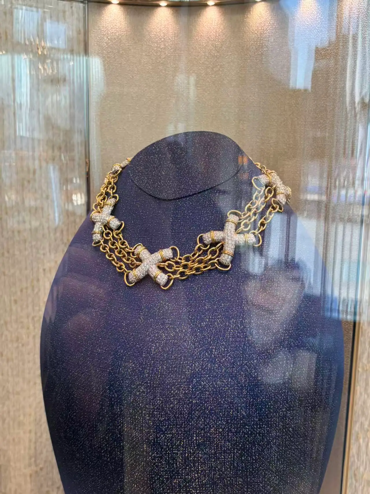 陈列了 Tiffany HardWear、Tiffany Lock、Tiffany Knot 和 Tiffany T 系列,以及蒂芙尼腕表。一层空间内,璀璨夺目的水晶吊灯、英国雕塑家托尼·克拉格 (Tony Cragg) 的青铜雕塑作品“Pair”引人入胜。