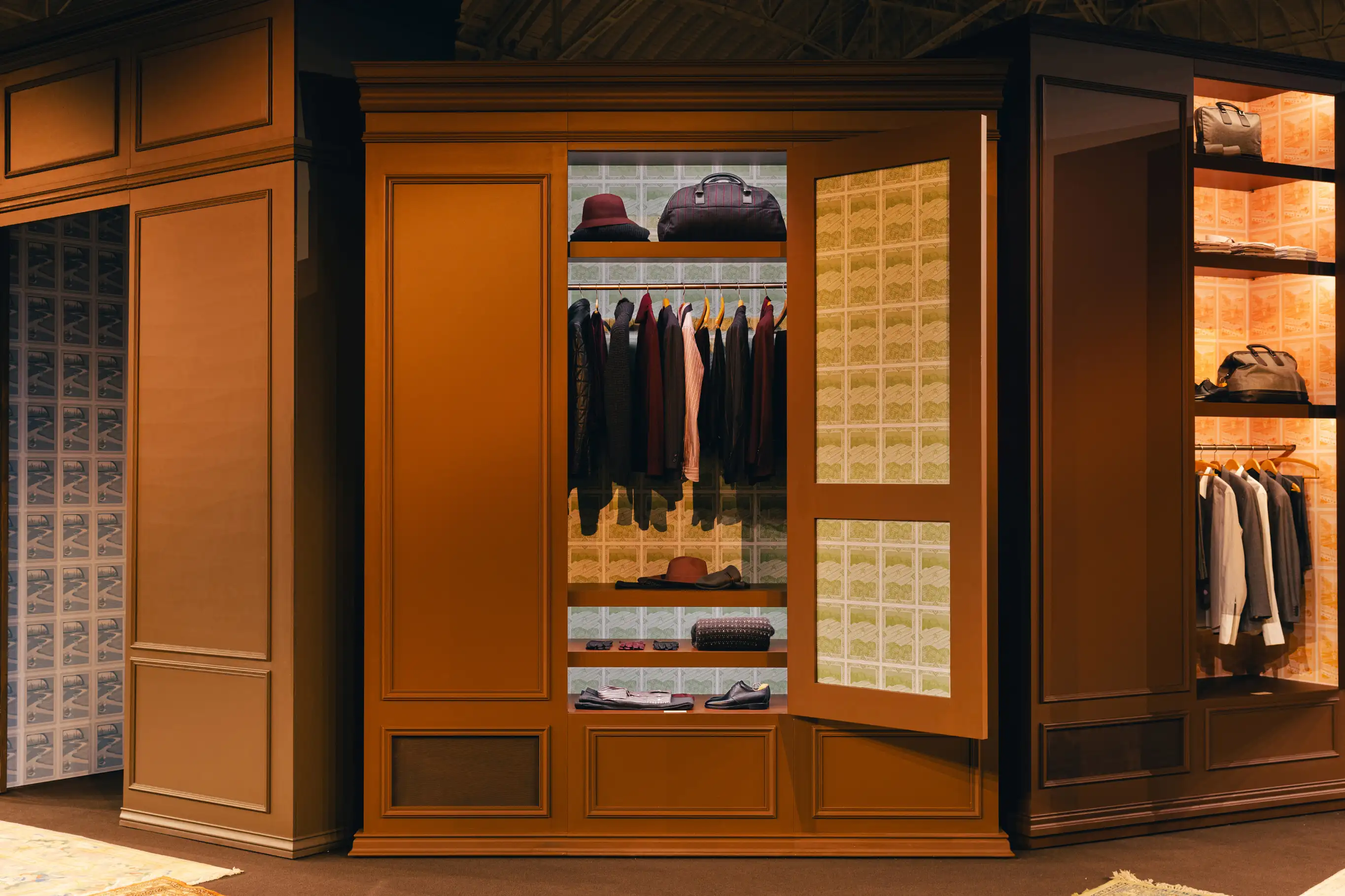 杰尼亚 2026 冬季系列从杰尼亚家族对制衣与着装的热忱追求中汲取灵感,以衣橱为主题,讲述家族故事。现场引人遐想的衣橱中陈列着来自杰尼亚集团执行董事长Gildo Zegna,与同为家族第三代成员Paolo Zegna的私人物品,其中包括个人珍藏及家族沿袭的珍贵衣物。这份深植于家族底蕴的传承,使得每一件物品都尤为珍贵,亦是任何情况下都无法割舍的执着。衣橱内设有博物馆式玻璃展柜,典藏杰尼亚于1930 年代制作的首套西装“ABITO N.1”——为创始人Ermenegildo Zegna伯爵量身定制,并甄选100% 澳大利亚羊毛面料精制而成。