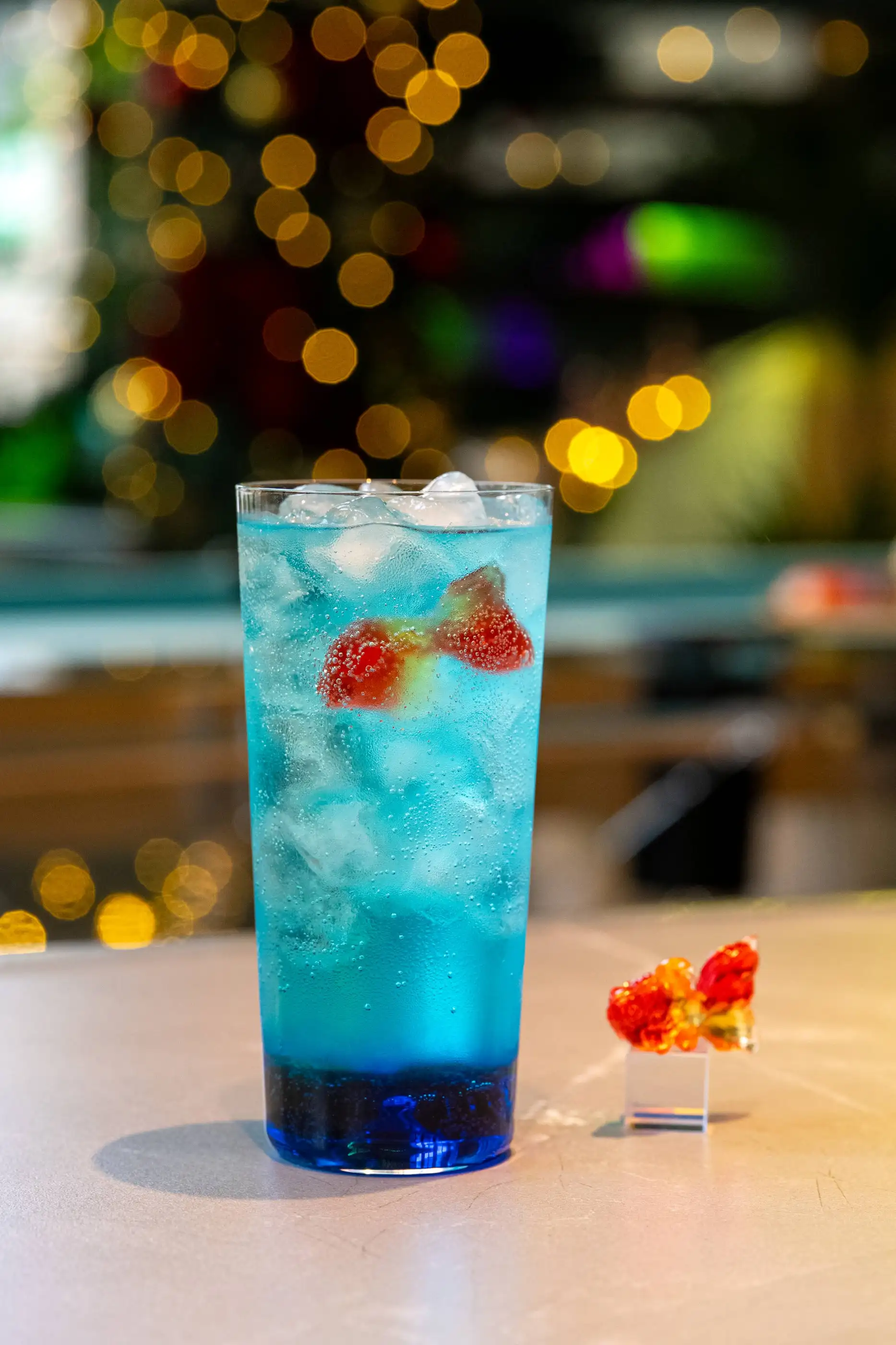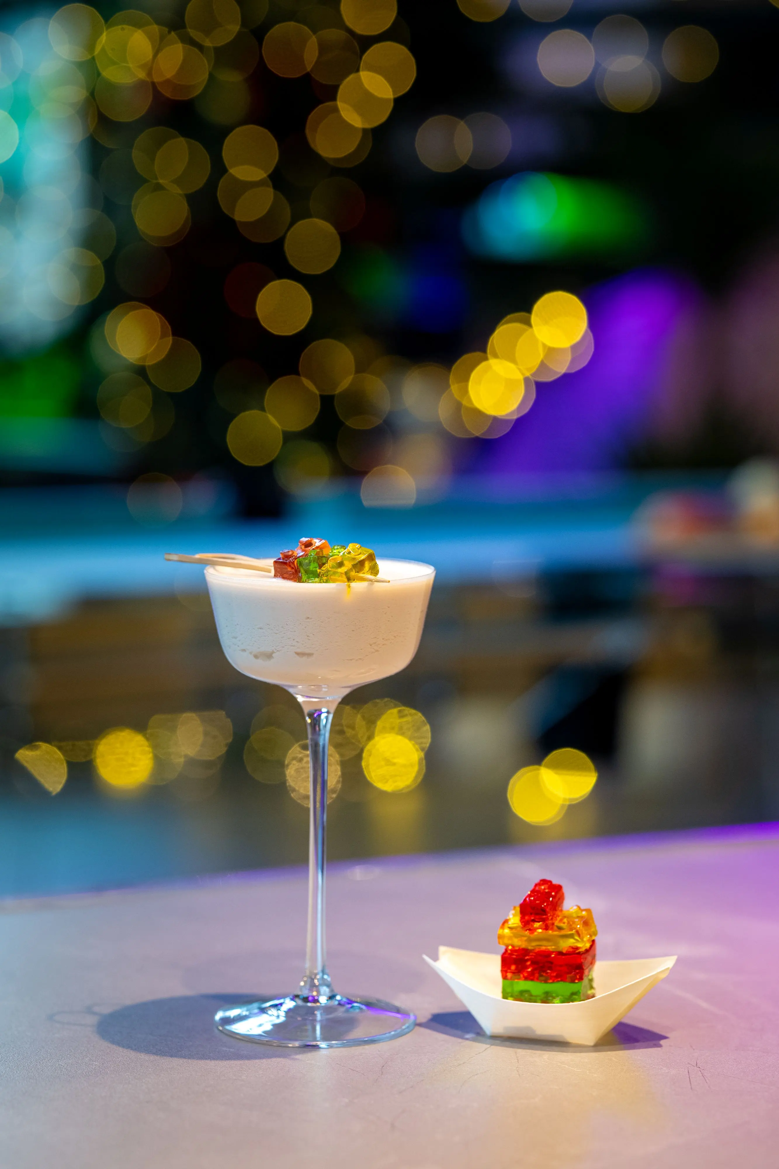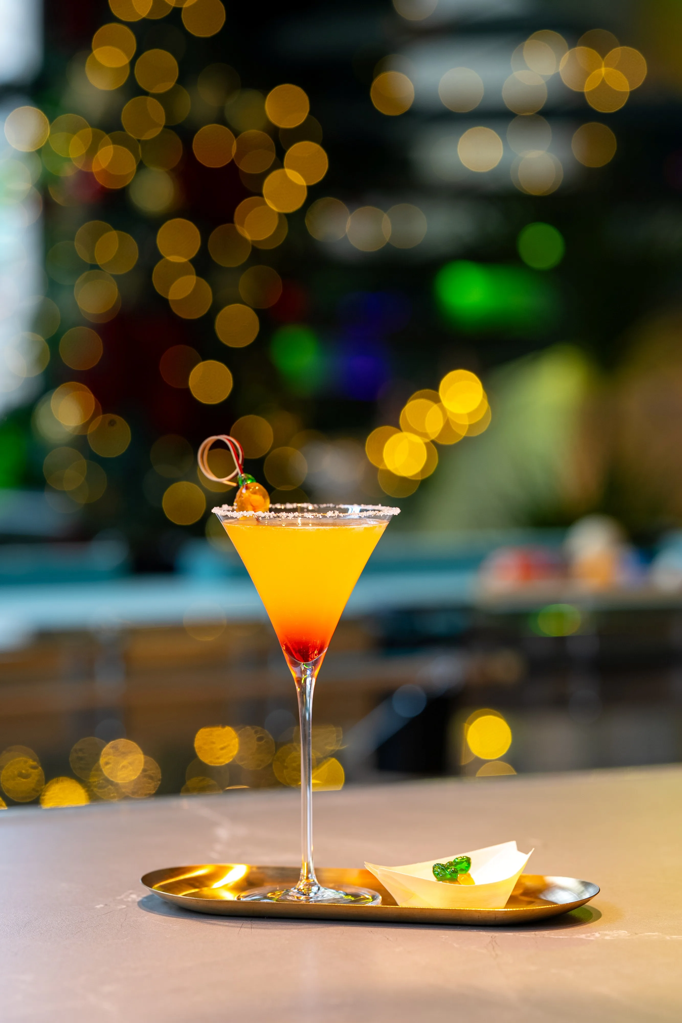 于新年之际推出三款寓意美好的限定糖果鸡尾酒, 将创意软糖融入特调:心想事“橙”融入阿麦斯甜橙爆汁软糖,明快的橙香与Q弹爆汁的口感交织带来清新的滋味。节节高升融合玩趣十足的阿麦斯积木软糖,口感绵密富有层次。年年有余则加入灵动的3D金鱼软糖,清爽俏皮。宾客办理入住后,可凭随房卡附赠的游戏币兑换其中任意一款,以微醺甜趣开启玩乐时刻。