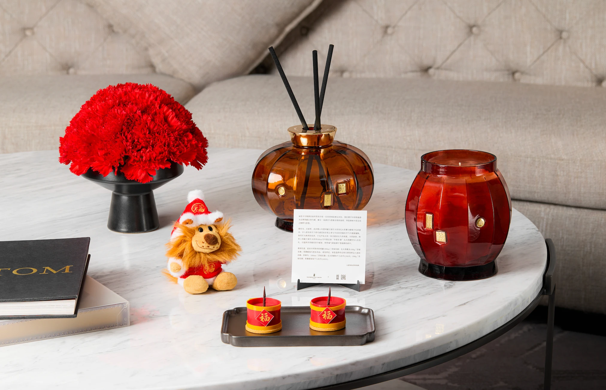 活动期间,预订酒店礼宾套房的宾客,可享房间内精心布置的闻献 “万家灯火” 系列无火香薰与香烛 —— 该系列灵感源自灯笼这一中国传统文化符号,瓶器取形于灯笼轮廓,通体澄亮,选用天然植艺香精与优质蜡基,兼顾纯净度与安全性,宾客可尽情感受清朗林木气息营造的安定氛围,同时获赠新年限定欢迎礼。此外,宾客还能尊享双人行政酒廊礼遇、免费使用 11 楼儿童玩趣天地的权益,并且可获赠闻献 “万家灯火” 系列马年限定香型 ——“杏福安康” 无火香薰礼,该香型以烟熏皮革调为主轴,融入杏香核心,搭配干草、桂花与木质调,将新春节庆的热烈情绪凝练为温润气味,留存新春节日暖意,寄托团圆平安的美好期许。