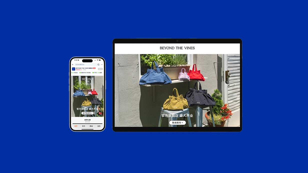 随着品牌天猫旗舰店及微信小程序商城同步上线,Beyond The Vines正式开启中国市场战略布局。双平台首发将呈现全品类产品矩阵,涵盖品牌标志性包袋系列、男女装设计服饰、配饰及生活方式单品,满足中国消费者对个性化时尚与品质生活的多重需求。