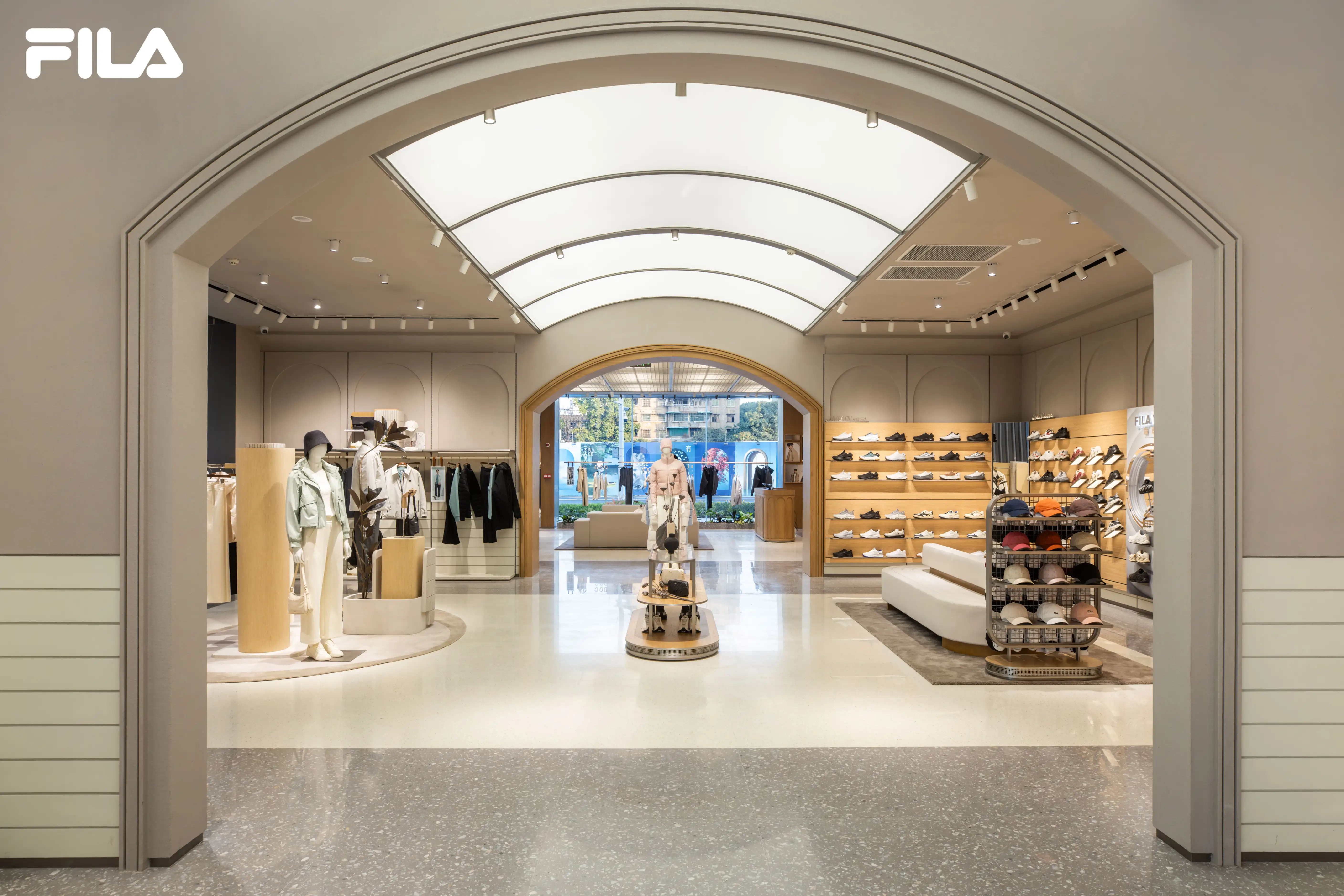 在全新升级的FILA ICONA苏州华贸万象天地和香港美丽华两家店中,核心拱门造型借鉴了意大利罗马建筑中的诺曼式门道元素,穹顶设计延续罗马万神殿的经典灵感;地面采用仿古瓷砖铺设,古朴色彩与细腻纹理相得益彰;墙面背景则结合了米兰建筑的洞石元素,光线透过拱门轮廓延伸至店内各区域,勾勒出极简而不失精致的空间意趣,让顾客得以从容感受高品质的购物体验。