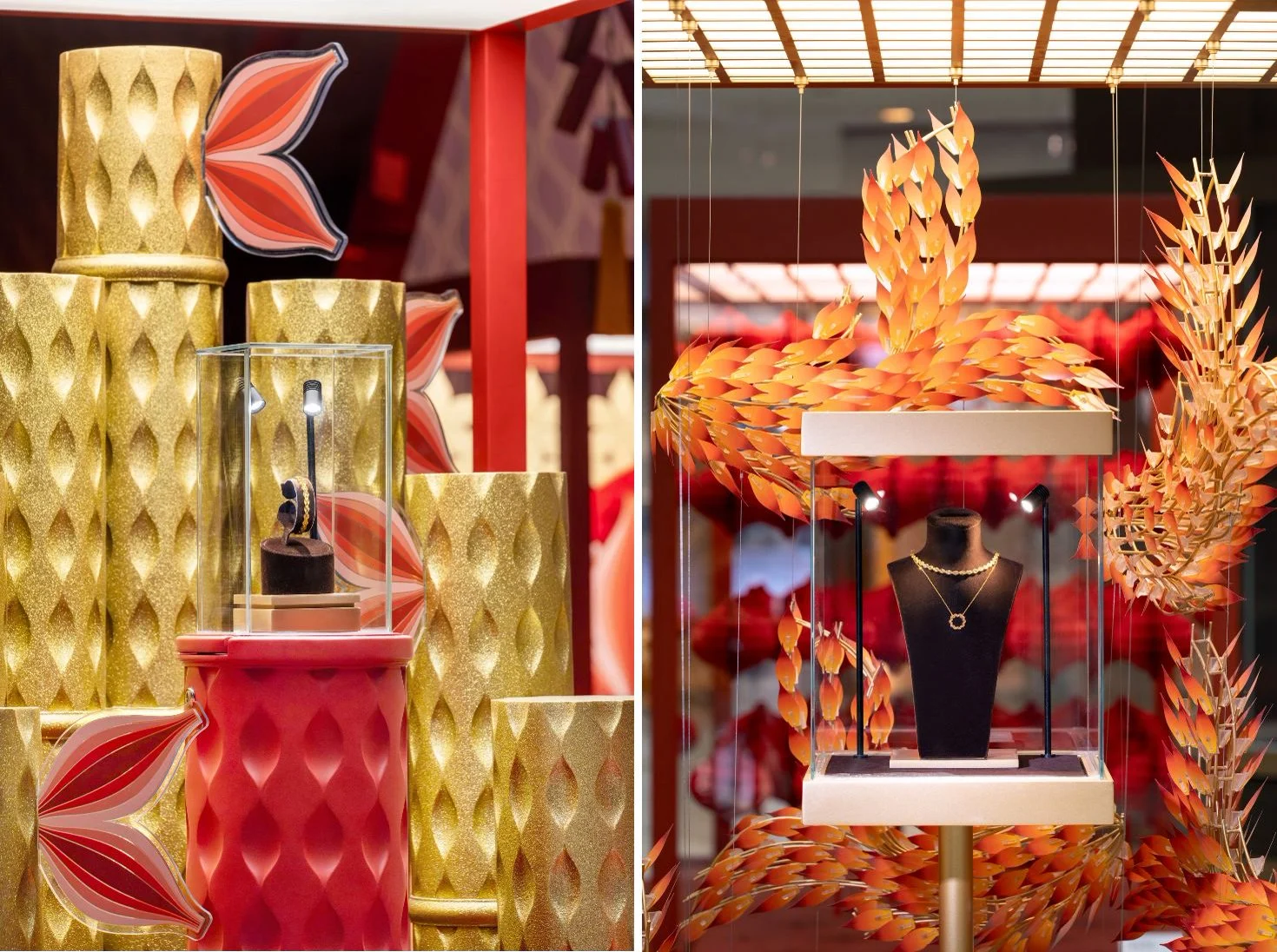 在周生生精心呈现的沉浸体验中,黄金珠宝的细腻精致与东方祝福的当代表达变得真切可触。在观演结束后,观众步入装置内部,更可仔细欣赏其中「畅游」的足金YuYu系列珠宝,亲身感受现代设计与吉祥寓意如何相映成趣、自然融合。