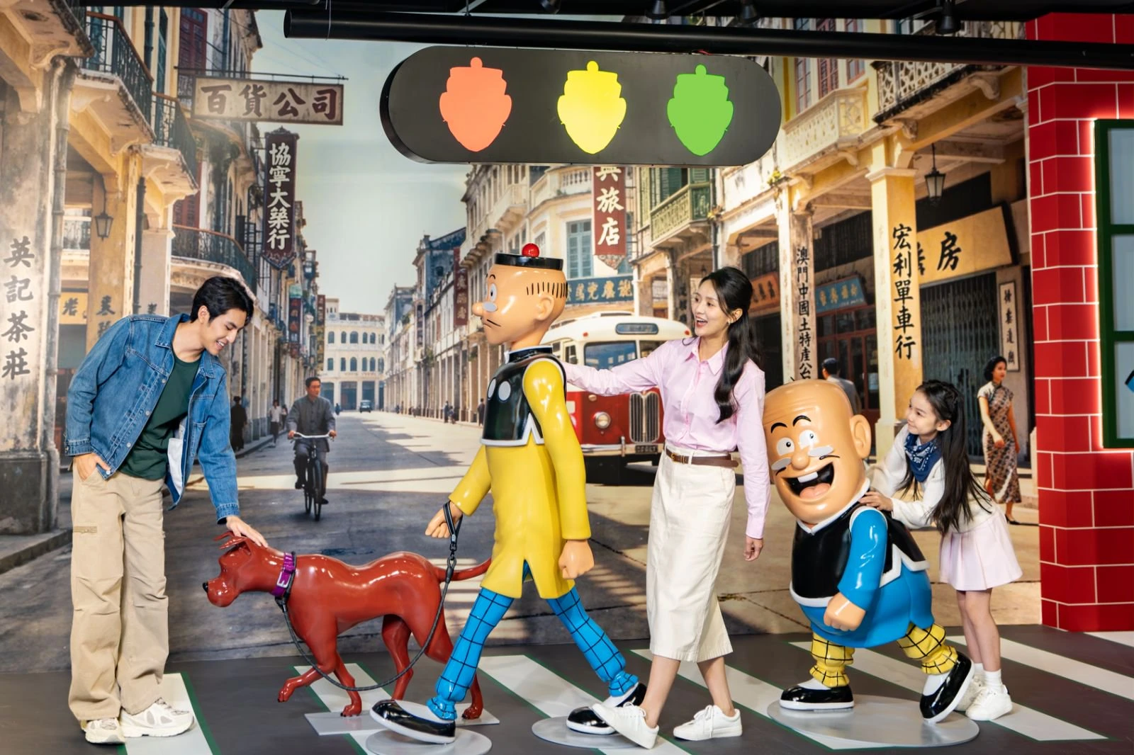 在融汇澳门本土文化的“漫‘葡’街市”,借由场景与漫画的结合,引领宾客在轻松漫步中,体验老夫子走进“当下”澳门的全新想象。“60新出色画廊”将展览视角进一步延伸至艺术潮流领域。从经典黑白四格,到色彩跳跃的普普艺术,再到与当代潮流文化联乘的全新创作,多元风格在此交汇。现场更设有“穿越老夫子”互动打卡体验,宾客可自由选择不同人物风格与场景拍照留念,化身漫画世界的一部分。