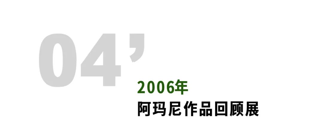 2006年,阿玛尼在上海美术馆举办阿玛尼作品回顾展。章子怡、言承旭等明星赶来捧场,并观看了当晚在上海大剧院举行的时装秀。回顾展是亚洲巡回展的最后一站。持续至该年5月3日。