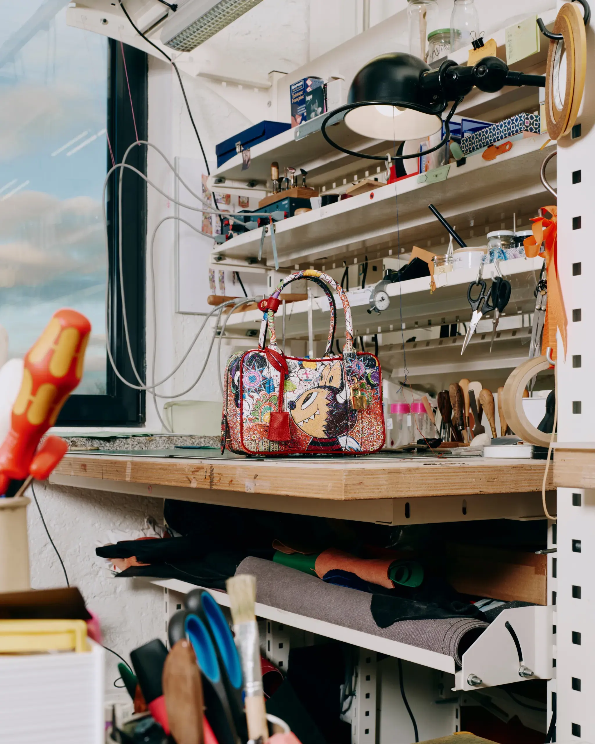 此次限量版系列以Lung的全新作品为特色,将其笔下的Labubu、Zimomo和King Mon等经典角色形象巧妙融入Moynat标志性M帆布。从周年纪念展览台北站的近期插画到早期草图,这些角色被印制在皮革贴片上,并缝制于最大的手袋之上。