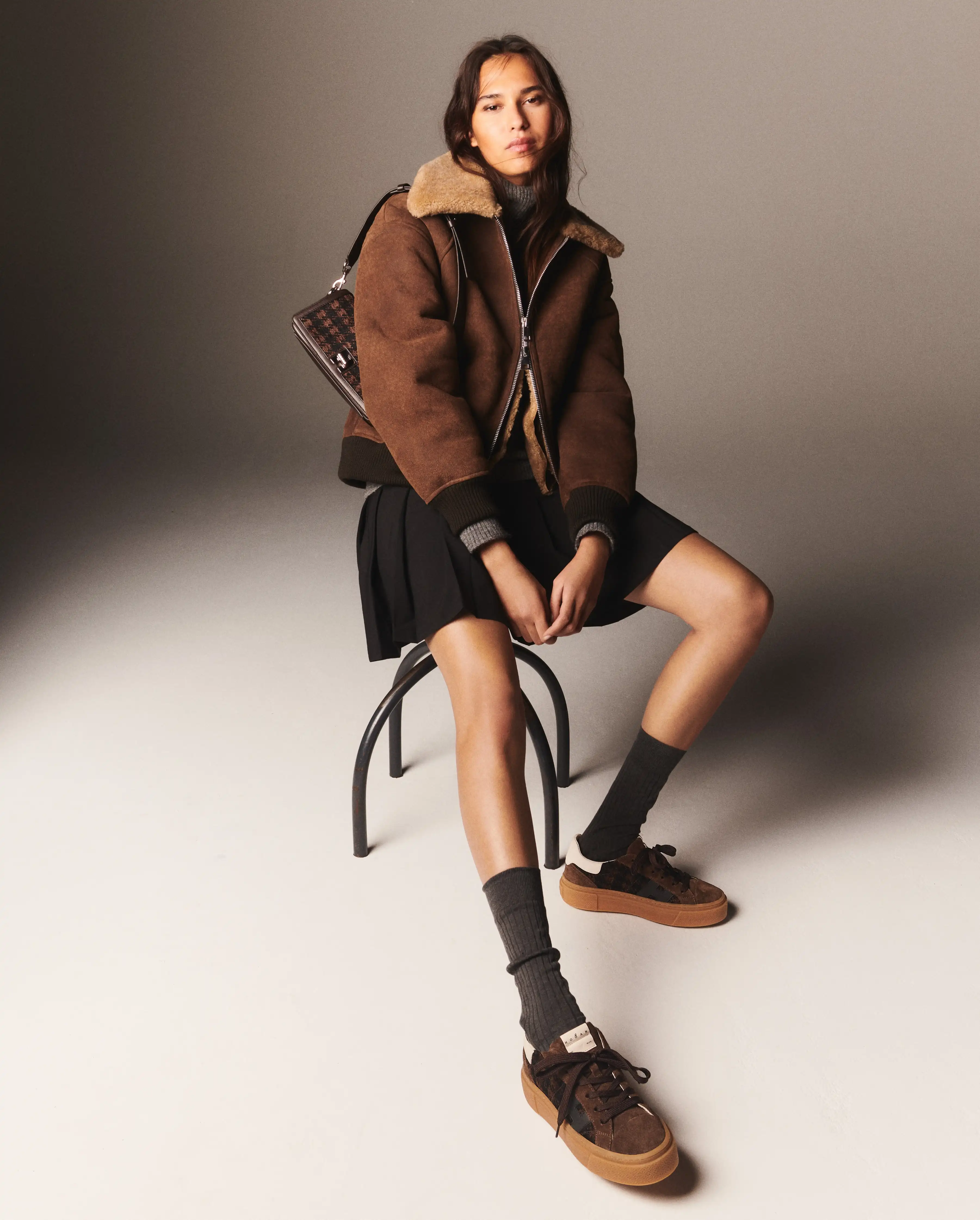 2026 年 2 月 27 日,意大利品牌 HOGAN 发布 2026-27 秋冬系列,以当代视角回溯品牌 1980 年代米兰典藏设计,围绕形式与创意、精致与随性的平衡展开。系列以利落线条、质感面料与暖调深邃色彩,呼应米兰装饰艺术与城市建筑气质。标志性 “H” 标识以全新比例呈现于鞋履及配饰中,同时融入创新针织、动物纹、千鸟格与水钻镶嵌等细节,将复古基因与现代都市穿搭美学融为一体