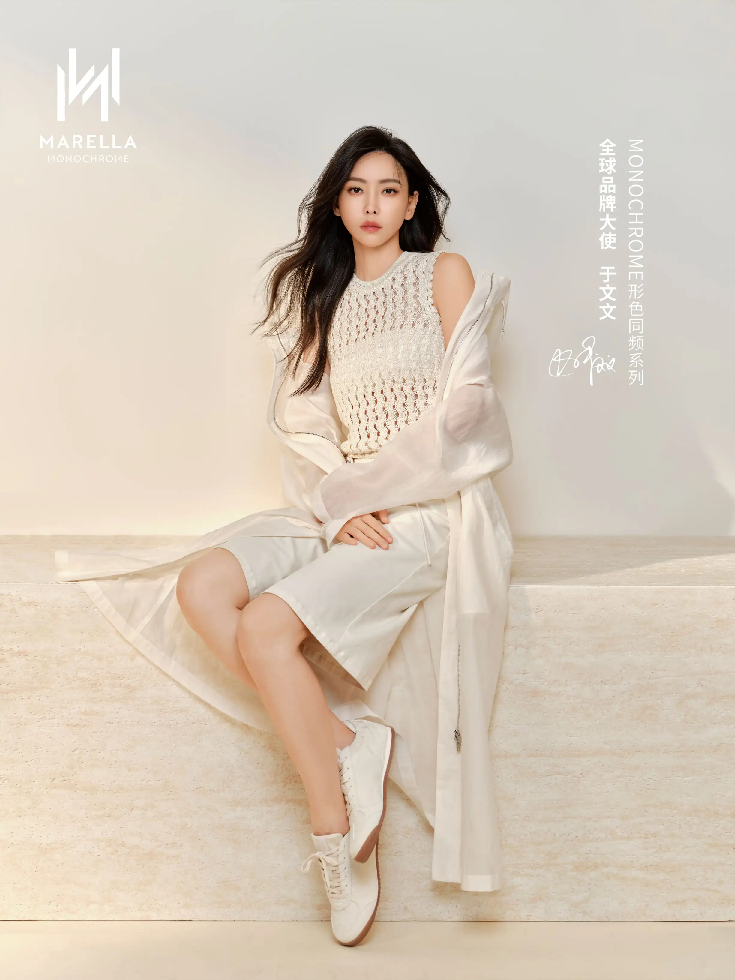 2026 年 3 月,意大利女装品牌 MARELLA 官宣歌手、演员于文文出任其 Monochrome「形色同频」系列全球品牌大使。该系列以单色美学为核心,主打意式材质与廓形表达。