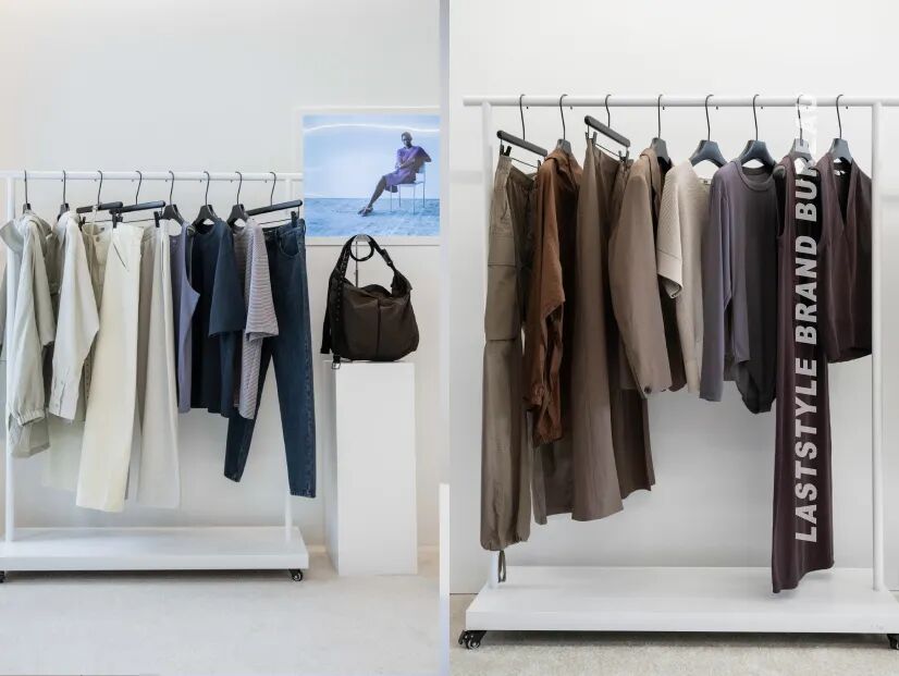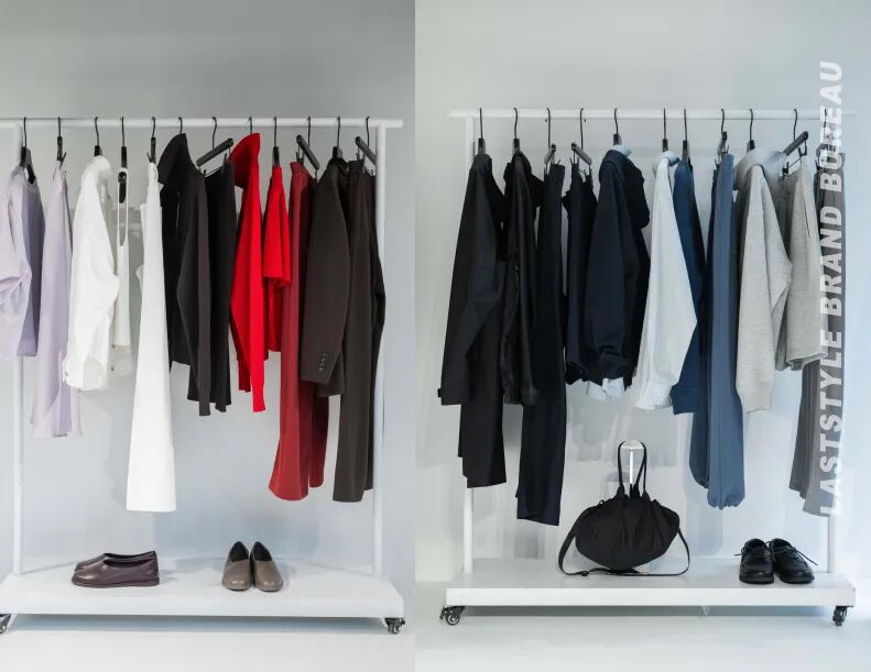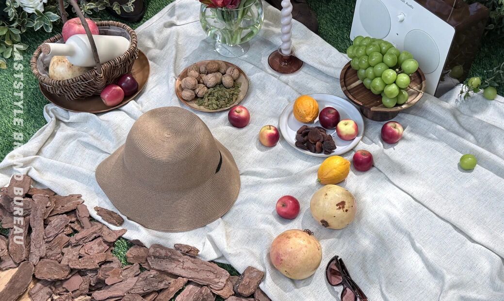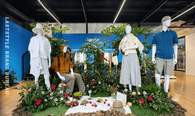 在这次春夏系列活动现场,这种感受更为强烈 。展厅里布置了葱郁的绿植和野餐布景,有人坐在那里翻看品牌册,有人在一排排衣架前慢慢走。我看到两个一起游逛的博主朋友拿着哈灵顿外套在身上比划。她跟同伴说,两件衣服,可以搭出一周的穿搭啦!