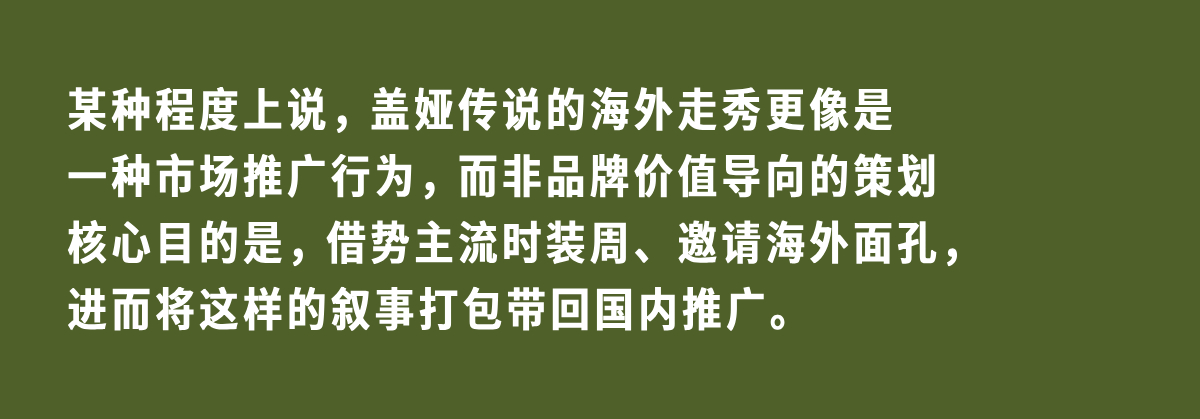 集邮一般的走遍国际四大时装周之后,盖娅传说在国内声名鹊起。也成为中国国际时装周官方日程中的重要品牌。