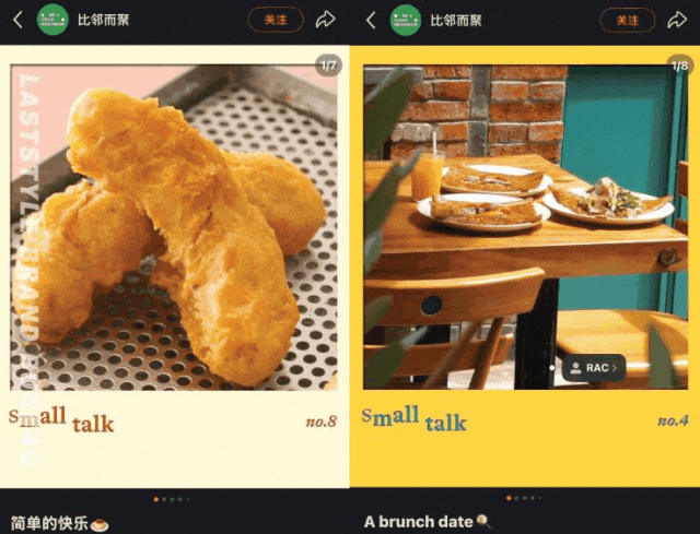 从那时起,「比邻而聚」成为了品牌面向零售空间推出的一系列生活方式内容计划,延续了下来。直到今天,打开「比邻而聚」社交媒体账号,我们能看到短句歌单,短句杂志(short paper)以及蔬果、吐司这样融入日常的美食分享。温暖且明媚,充满了对生活探索的欲望,和与人群的连接感。