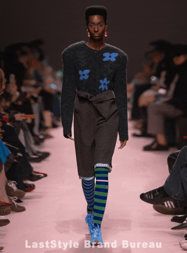 不规整,不循规蹈矩...更野、更放肆,是这季Short Sentence给我的直观感受。过往几季,Short Sentence总是把色彩和条纹藏在日常的褶皱里,像一首轻快的诗。但这一次,它们被放大了——更浓烈、更直白、更毫不掩饰。针织衫上的花朵像刚从花园里摘下,围巾的条纹像打翻的颜料盘。整体的感受是很轻松、很愉悦,看完出来有种微醺感,像是被彩色气泡托着走出来的。