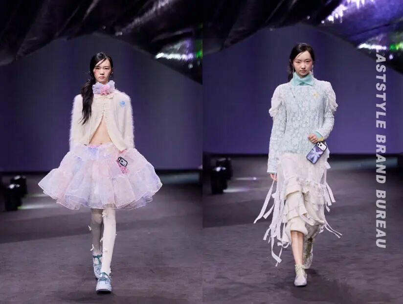 其实,这一季有不少品牌都在讲童年,YANAG的表达更加直接。直接往往更能让人共情。柔软的针织、带有旧化质感的织物、层叠的不对称廓形——像被时间慢慢磨过的衣物,温暖而真实。YANAG给出的答案或许是我们共同的期许:长大后,也可以什么都不想,只要成为一个快乐的人。
