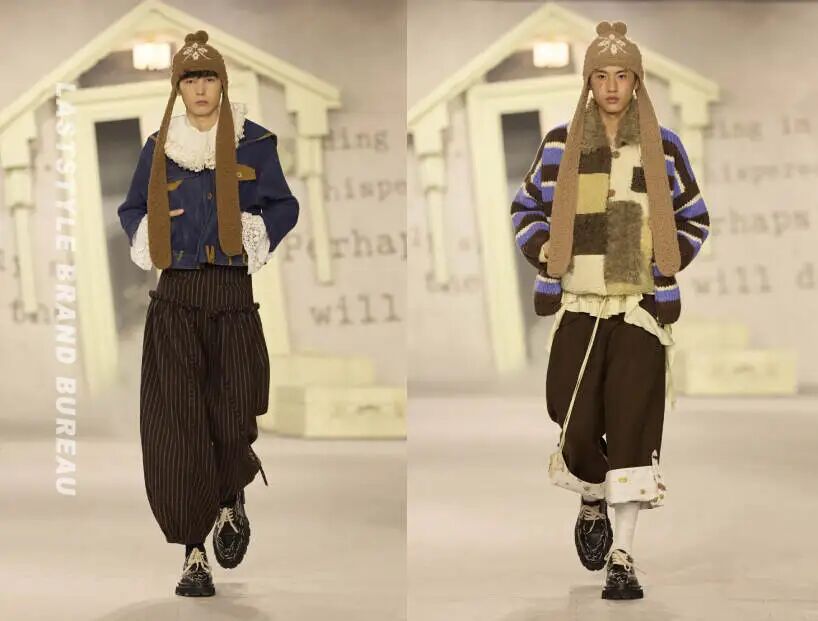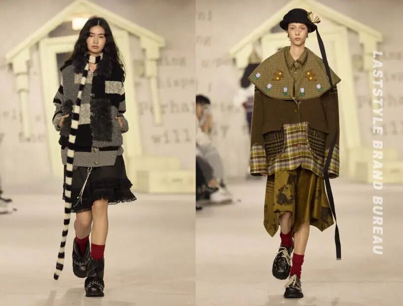 本季的主题是一个问句:“你长大以后想做什么?”秀场空间里,墙面贴满泛黄的故事书内页,零散摆放着小小的童话房子装置。
