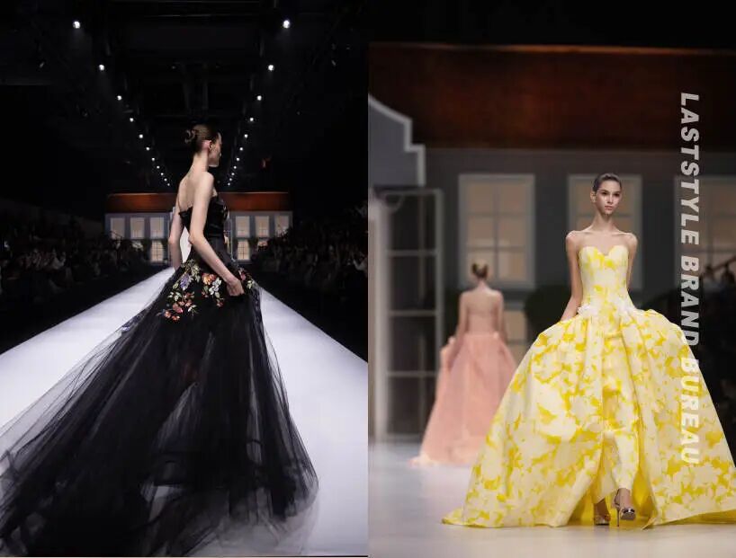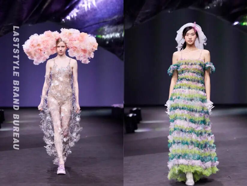 MARK GONG设计师称,这是我们第一次做得这么甜、这么缤纷多彩,也是我们第一次做大面积刺绣,还有体量夸张、蓬松铺张的礼服。