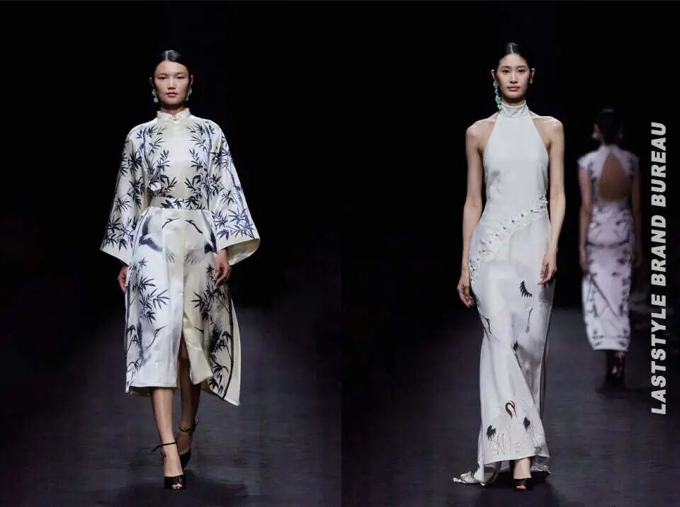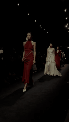 随着灯光渐暗,一位手提莲花灯、身着白色轻纱裙装的模特缓缓登场。丝竹与器乐混编的乐曲悠扬而起,整个空间被一层柔和的光晕笼罩。那一瞬间,仿佛走入了一个不属于具体年代、只属于记忆与想象的氛围——不是某个确切的时空,而是某种被唤起的心境。