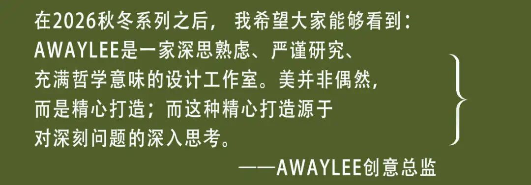 AWAYLEE的内秀不仅体现在独特的设计语言,敏锐且有层次的时代情绪洞见,也体现在品牌策略上的“不迎合”。
