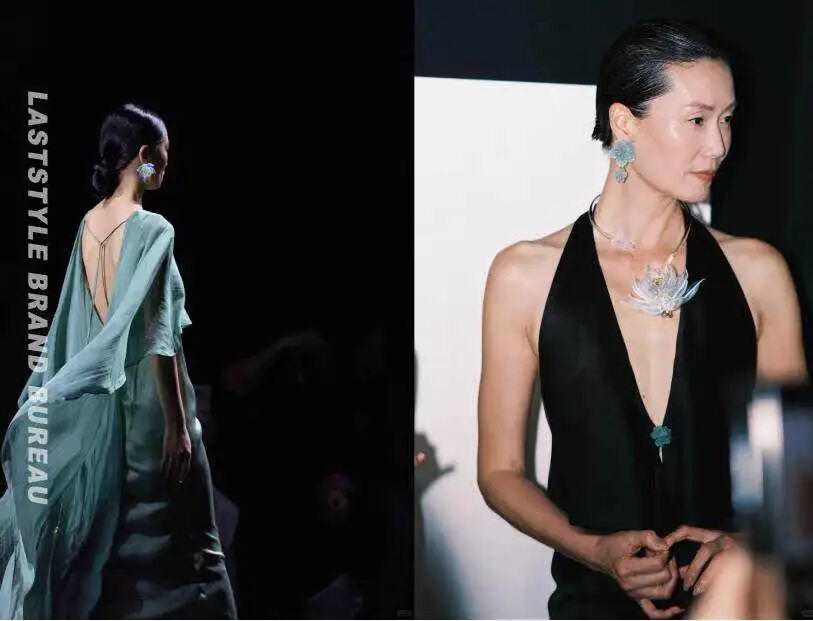 这次秀场,品牌邀请了三位名模演绎作品,她们中不乏出道便为Dior、Chanel走秀的知名模特。而与非遗匠人的深入多年的合作,将通草花艺术纳入大众视野,其他品牌或许会大书特书,比如拍摄纪录片、推出杂志刊物,但对AWAYLEE来说,这一切水到渠成、自然而然。