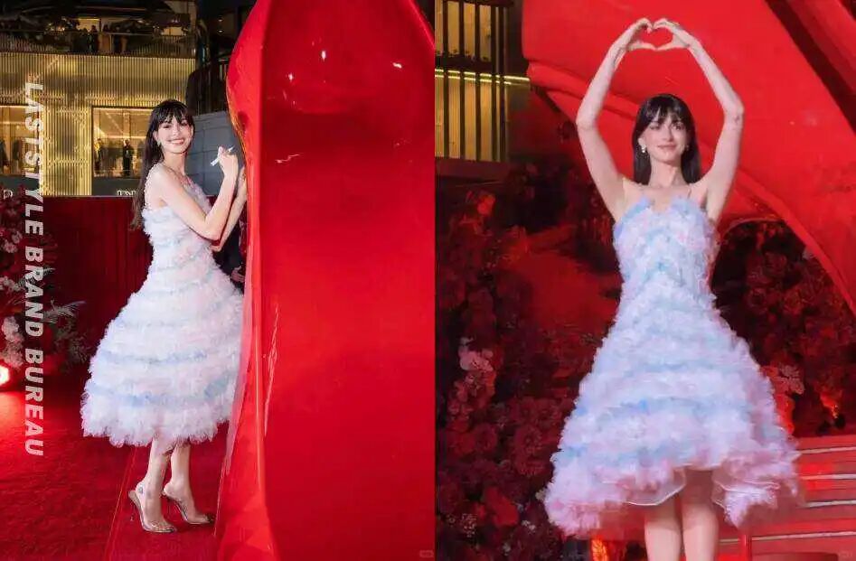 有种微妙的错位感弥漫在这些讨论里。这次《穿普拉达的女王2》活动现场,安妮·海瑟薇身着中国设计师品牌Susan Fang的礼服裙登场,本该是提气时刻,却涌现了不少人指出裙子做工欠奉、拉链过于显眼,以及那被反复提及的「过于甜腻」。相比首尔场的素雅、东京场的克制,上海这一身被评价为「甜得有点廉价」。