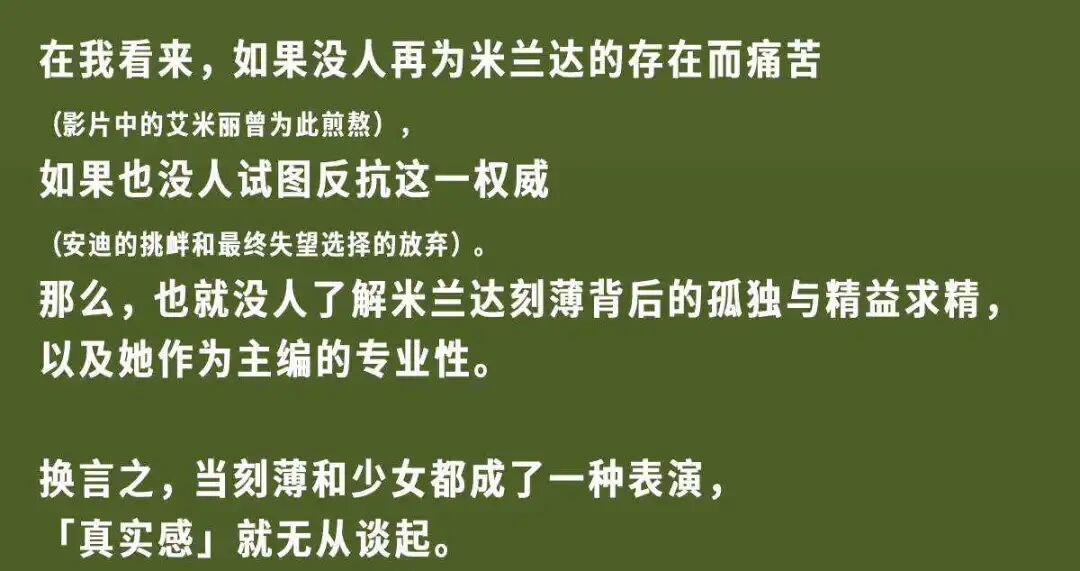 整个传播过程中,米兰达的刻薄成为一种「可以被包容」或者被尊重的权威感。
