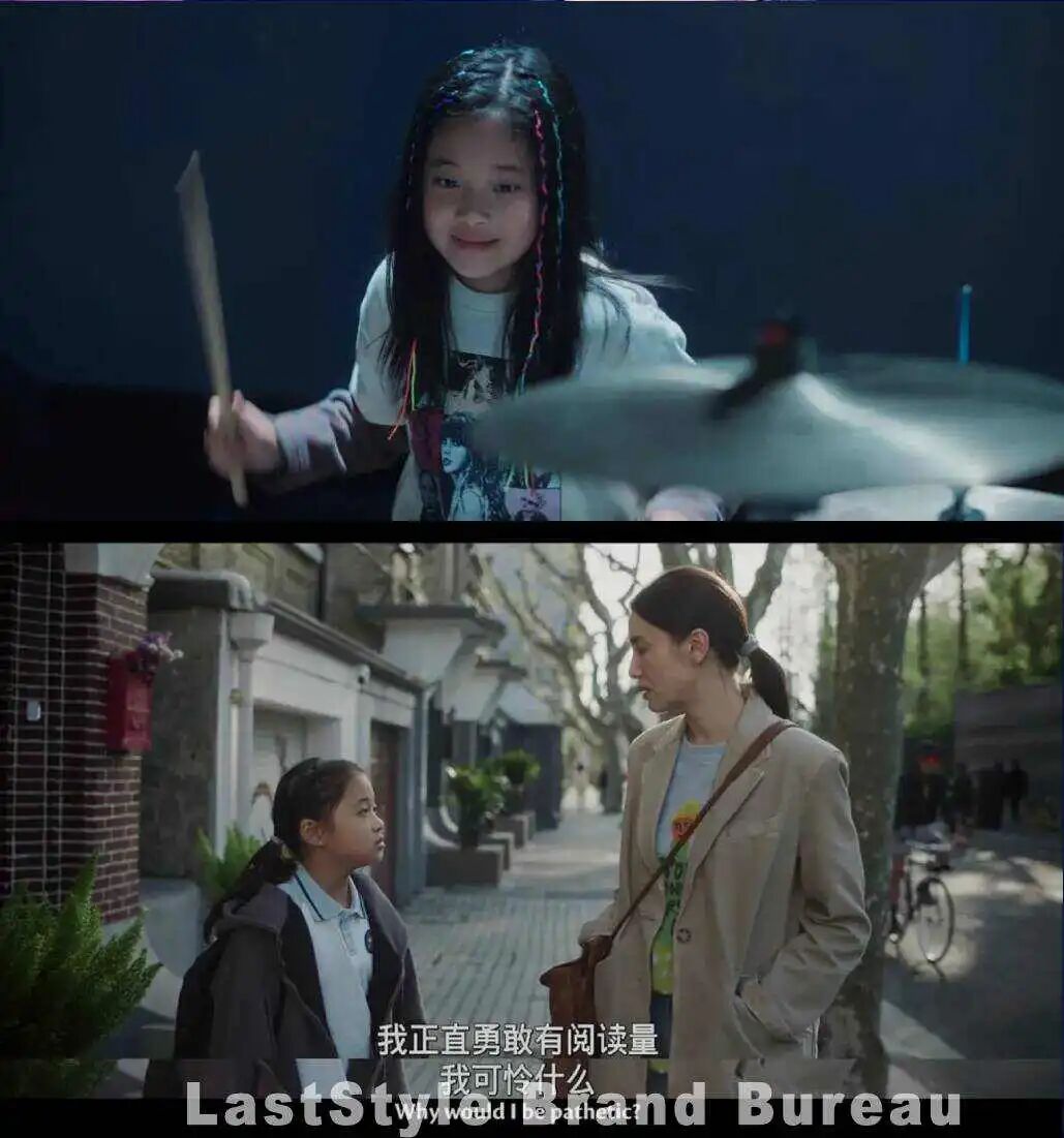 《好东西》中的王茉莉,则是另一种范式。这个坦诚自己「只喜欢在台下鼓掌」的女孩,总是语出惊人打破成年人的假面,却也会安慰别人说「你的眼睛很好看,我喜欢一直看」。当小孩王茉莉问大人们「女孩应该怎样打鼓」,小叶告诉她:「你怎么打鼓,女孩就怎么打鼓。」