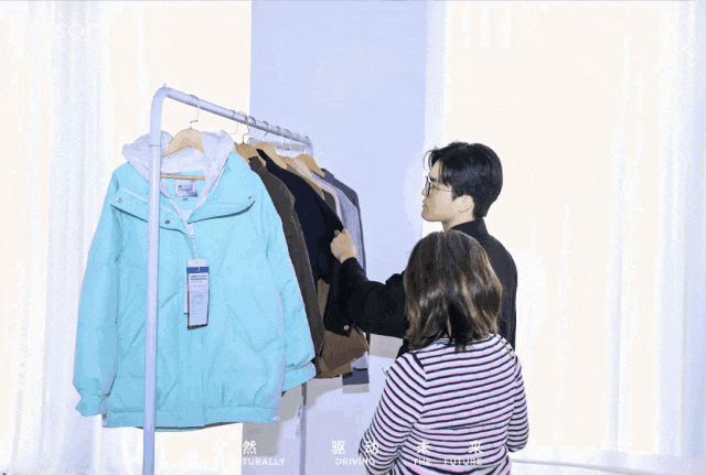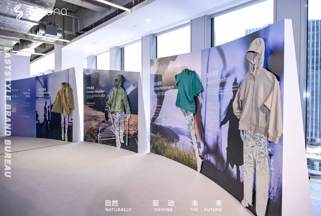 「材料进入生活」则将视野拉回日常。城市律动、户外适应、动态表现、羊毛系列——这些场景分类几乎覆盖了一个都市人全部的生活半径。通勤途中需要的舒适体感,运动时刻的排汗诉求,差旅时从行李箱取出衣物仍能保持挺括的期待……这些琐碎却真实的体验,背后都站着材料的沉默支撑。