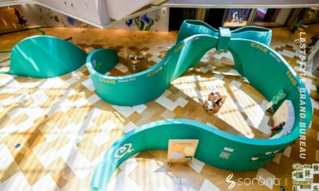 去年6月,品牌曾在兴业太古汇参与「循环快乐·礼物乐园」活动:库存面料被重塑为巨型蝴蝶结装置,废弃布料在设计师手中蜕变为艺术雕塑。