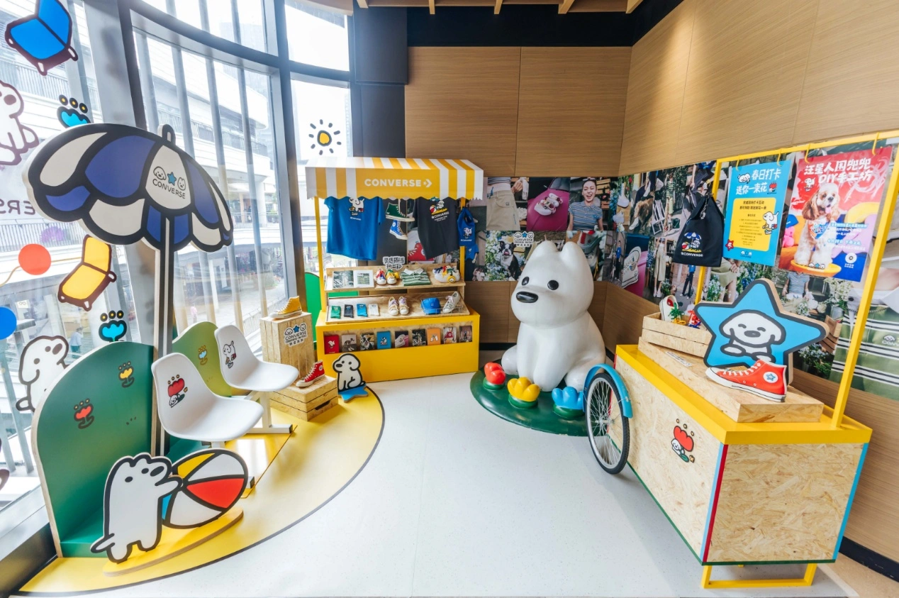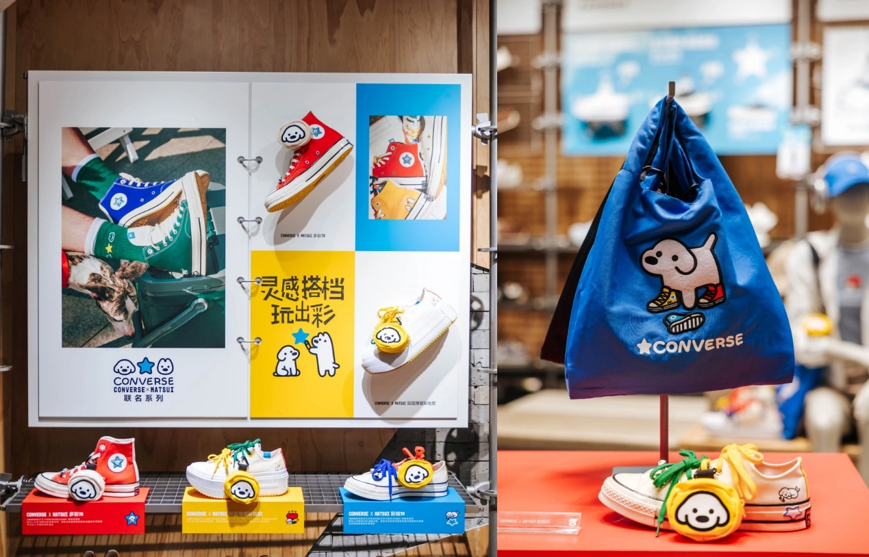 萌宠“搭子”加上缤纷配色,成就了CONVERSE x MATSUI联名系列的俏皮模样,该系列已于近日欢乐上市。围绕联名系列中标志性的萌趣小狗形象与明亮配色,CONVERSE于4月16日至5月17日在上海前滩太古里门店,呈现一处充满春日活力的联名主题空间,将这份鲜活想象延展至线下场景。这里不仅是CONVERSE x MATSUI联名系列的沉浸式展示空间,更是一处可以动手创造、拍照打卡、收获花礼的春日游乐场——邀请每一位灵感玩家,带上你的 “搭档” ,来此玩出彩。