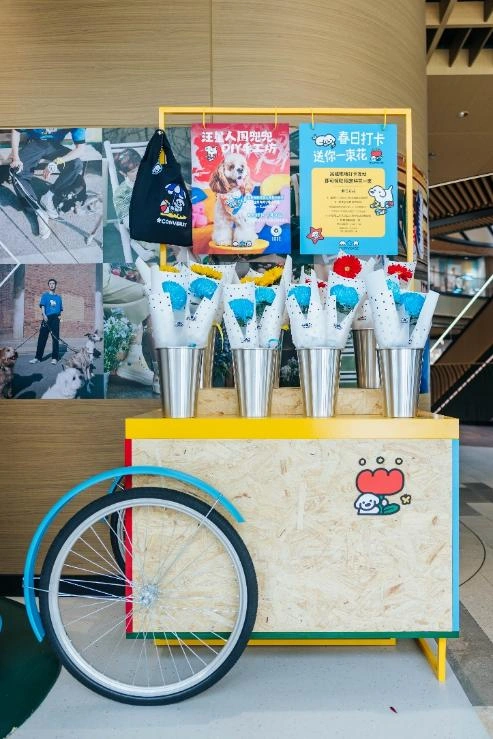 步入限时空间,仿佛掉进插画师MATSUI松井一将笔下的彩色童话世界。艺术家标志性的插画语言贯穿整个陈列,色彩鲜明的装置、产品展示与生活化场景拼贴彼此呼应,让这里像一页被放大的春日灵感手账,每个角落都藏着让人会心一笑的笔触。而在指定日期,空间还将分别迎来发挥个人创意的限时手作体验——“汪星人围兜兜 DIY 手工坊”与“妙手生花春日手作”将动手创作融入门店体验之中,每一件手作成品,都是灵感搭档之间最温柔的见证。